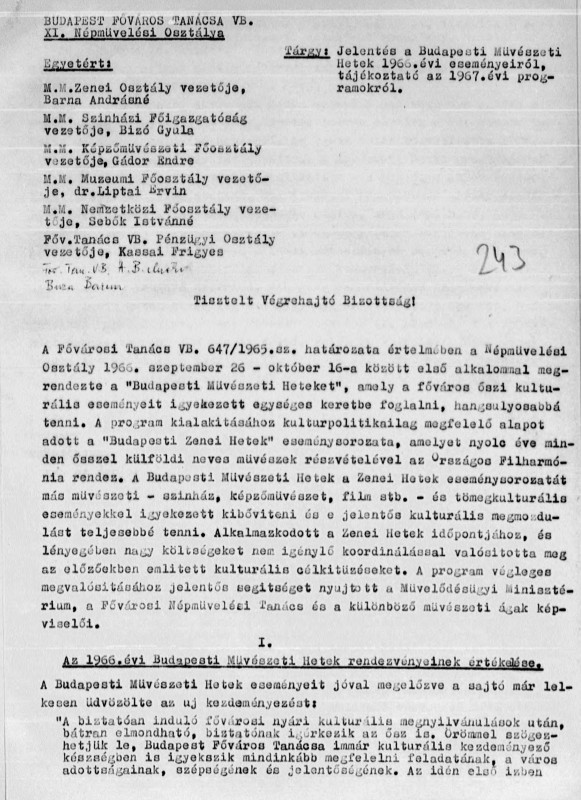 -Jelentés a Budapesti Művészeti Hetekről. 1966. évi eseményeiről BFL XXIII.102.a.1. 1967. 02. 01.