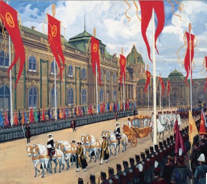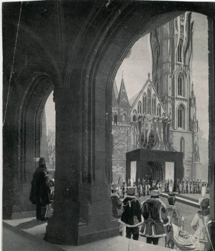 -Kós Károly: IV. Károly és Zita királyné koronázási ünnepségének terve