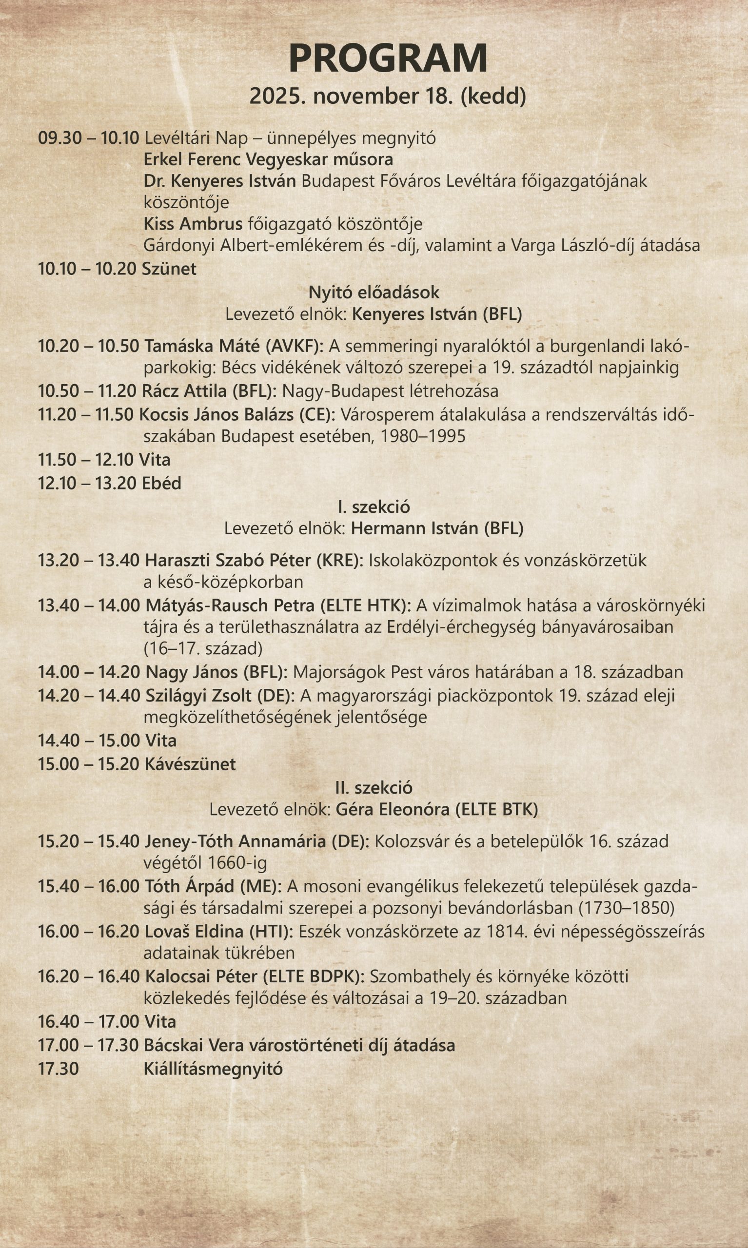 15.40 – 16.00 Tóth Árpád: A mosoni evangélikus felekezetű települések gazdasági és társadalmi szerepei a pozsonyi bevándorlásban (1730–1850)