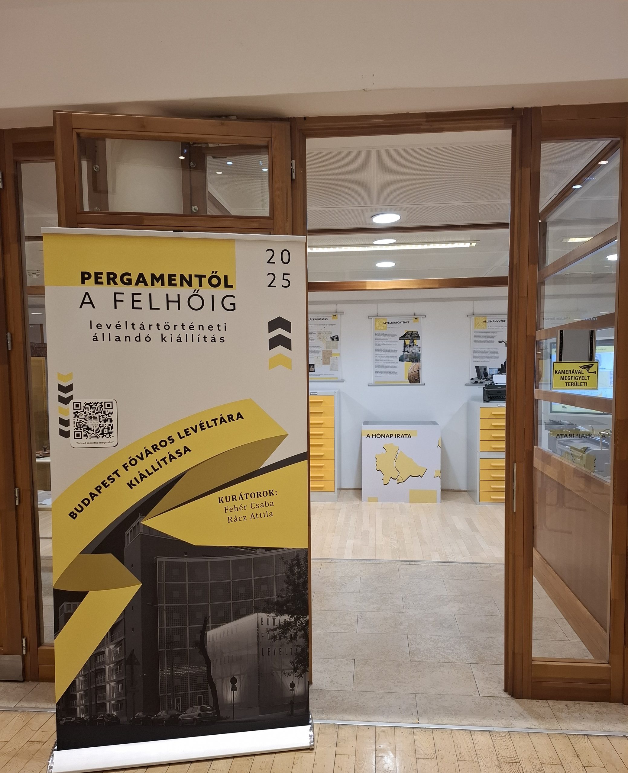 Levéltárunk földszintjén a Levéltári nap keretében megnyílt A pergamentől a felhőig című állandó kiállítása. A tárlat alapgondolata, a fővárosi levéltár, a maradandó iratok őrzésének kialakulásának ismertetése, egyben a levéltárosok munkájának bemutatása, a közösség számára végzett feladatok felvillantása az ehhez szükséges eszközök kiállítása.