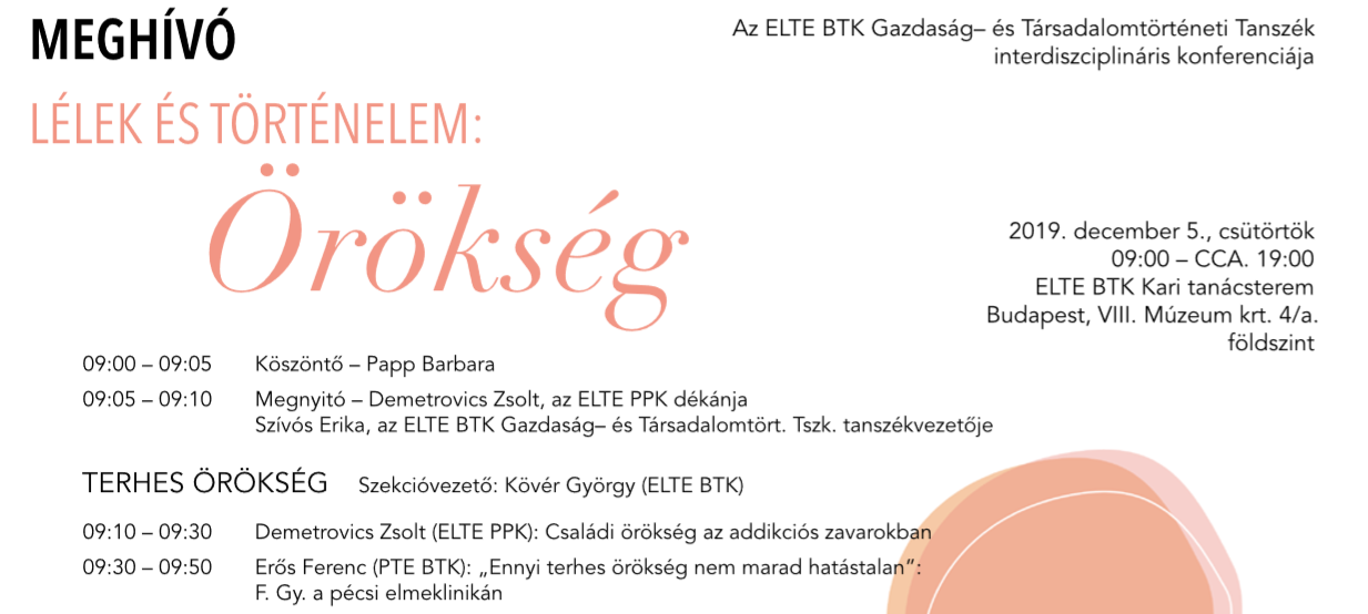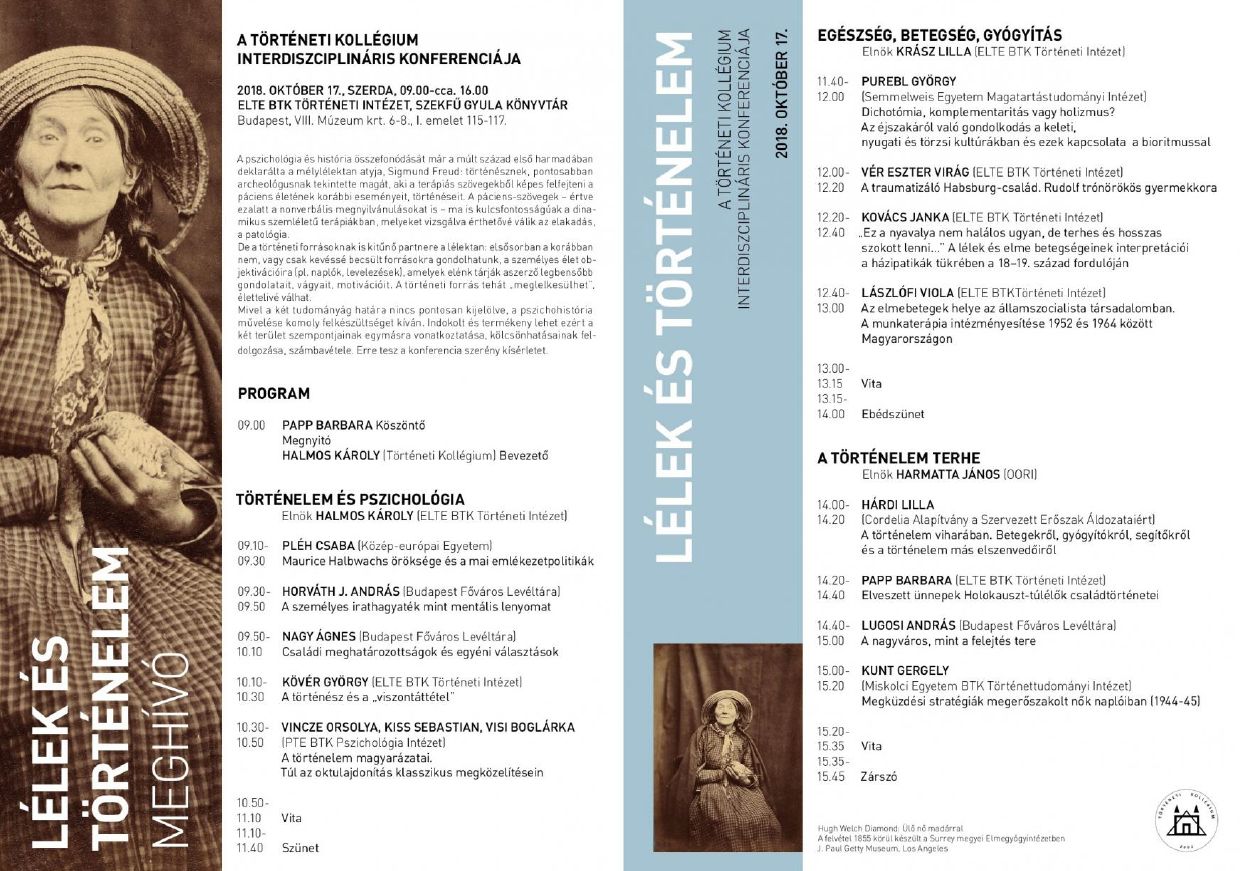 Másodszorra rendezi meg az ELTE Történeti Kollégiuma a pszichológia és történelem területeit egyesítő, Lélek és történelem című konferenciáját, melyen Budapest Főváros Levéltára főlevéltárosa, Nagy Ágnes a családi irathagyatékokról tart előadást.